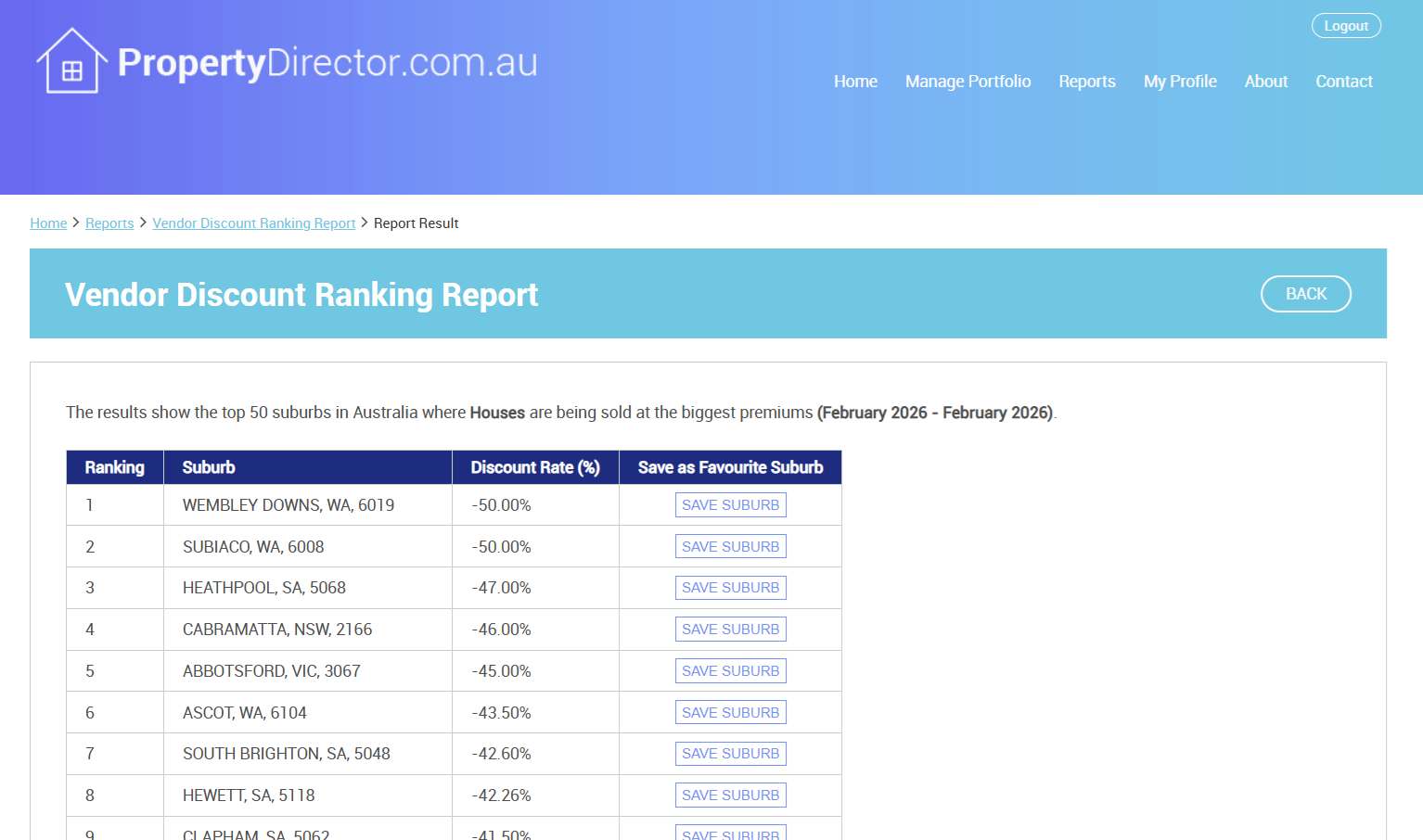 Check out the suburbs where houses sold at the highest premiums by looking at our vendor discount ranking report for February 2026. Suburbs in SA and NSW dominated the list.